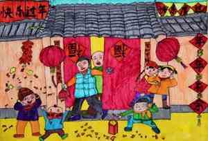 爸爸在忙碌地挂着又大又红的灯笼,一对灯笼好像一边咧嘴笑一边在说话呢!我只想再挂上一对灯笼,让它们聊得更欢。趁现在还早,我和妹妹一起去买了对联和“福”字,顺便买了些烟花准备一起放。跟爸爸一起认真地把对联贴好,再把福字贴在大门上,调皮的我们还把福字贴在灯笼上,笑得大家合不拢嘴,门口顿时有了新年的氛围。