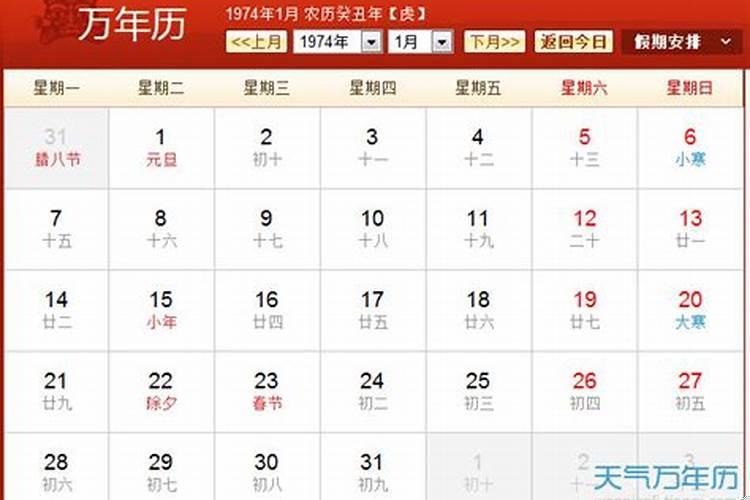 5、因为,1974年阴历正月二十七,正月是农历的丙寅月。对应的生肖是虎。这一天是星期一,这一天对应的天干地支是庚寅日。地支寅对应的生肖是属虎1974年农历二月二十七是阳历多少。这一天是甲寅年,丙寅月,庚寅日。这是虎年,虎月,虎日的一天。这一天对应的阳历是2月18日。